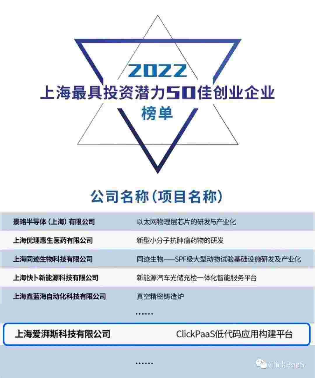 NO钱包 作为国内低代码PaaS平台的领军企业,,,,与120家创企入围角逐。。期间接受了来自德同资本、、、领中资本等知名投资机构的10位投资人组成专家评委团的背靠背盲选。。。。并最终入围“2022上海最具投资潜力50佳创业企业”榜单,,,,被列入“上海市重点培育创业企业库”。。。。