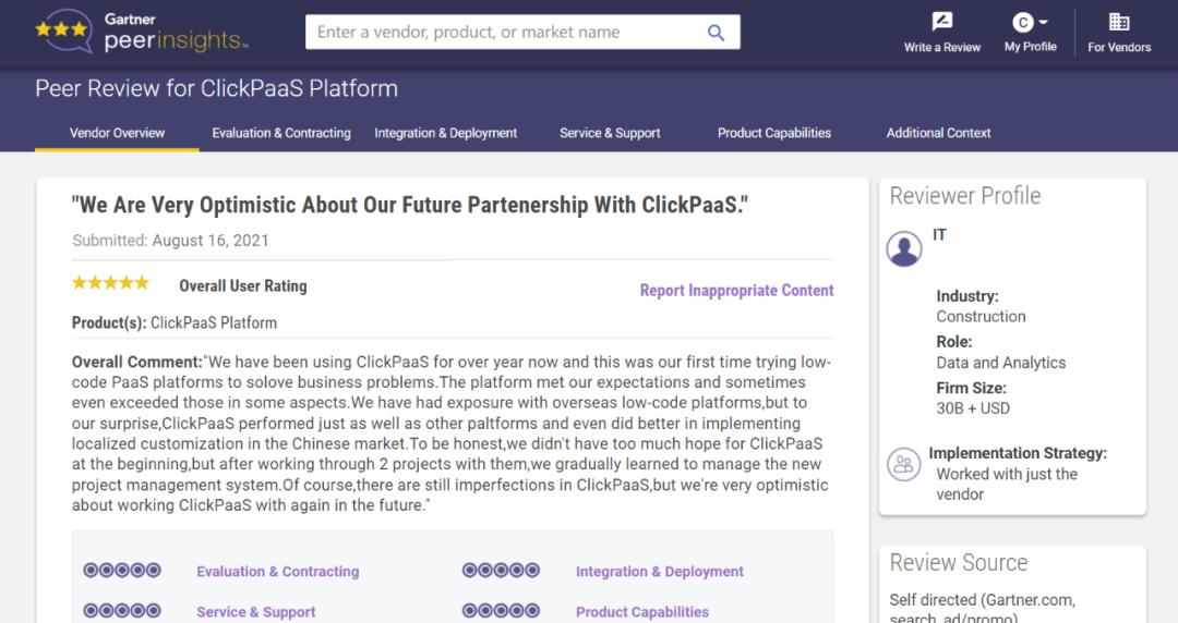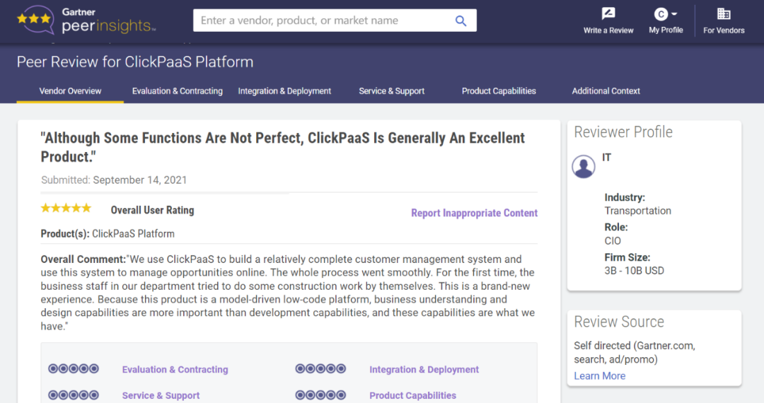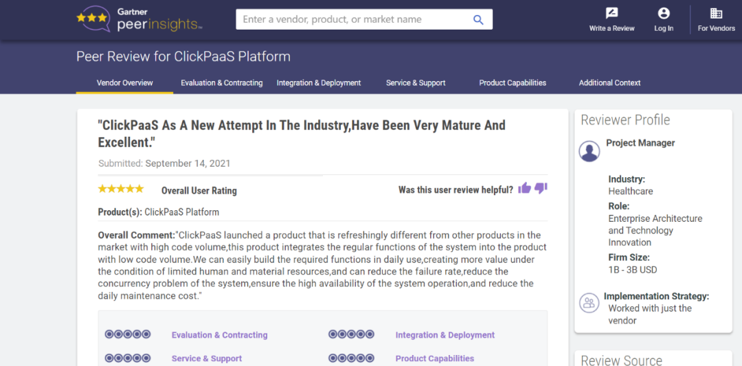 Tips::::【Peer Insights】——用户对企业IT产品和服务发布真实评价的平台。。。。目前已有355个市场,,,,255,000条经过验证的评价。。。。每一条评价Gartner会针对参评企业营收规模及参评人员信息做验证、、、评价内容做多维核实。。。